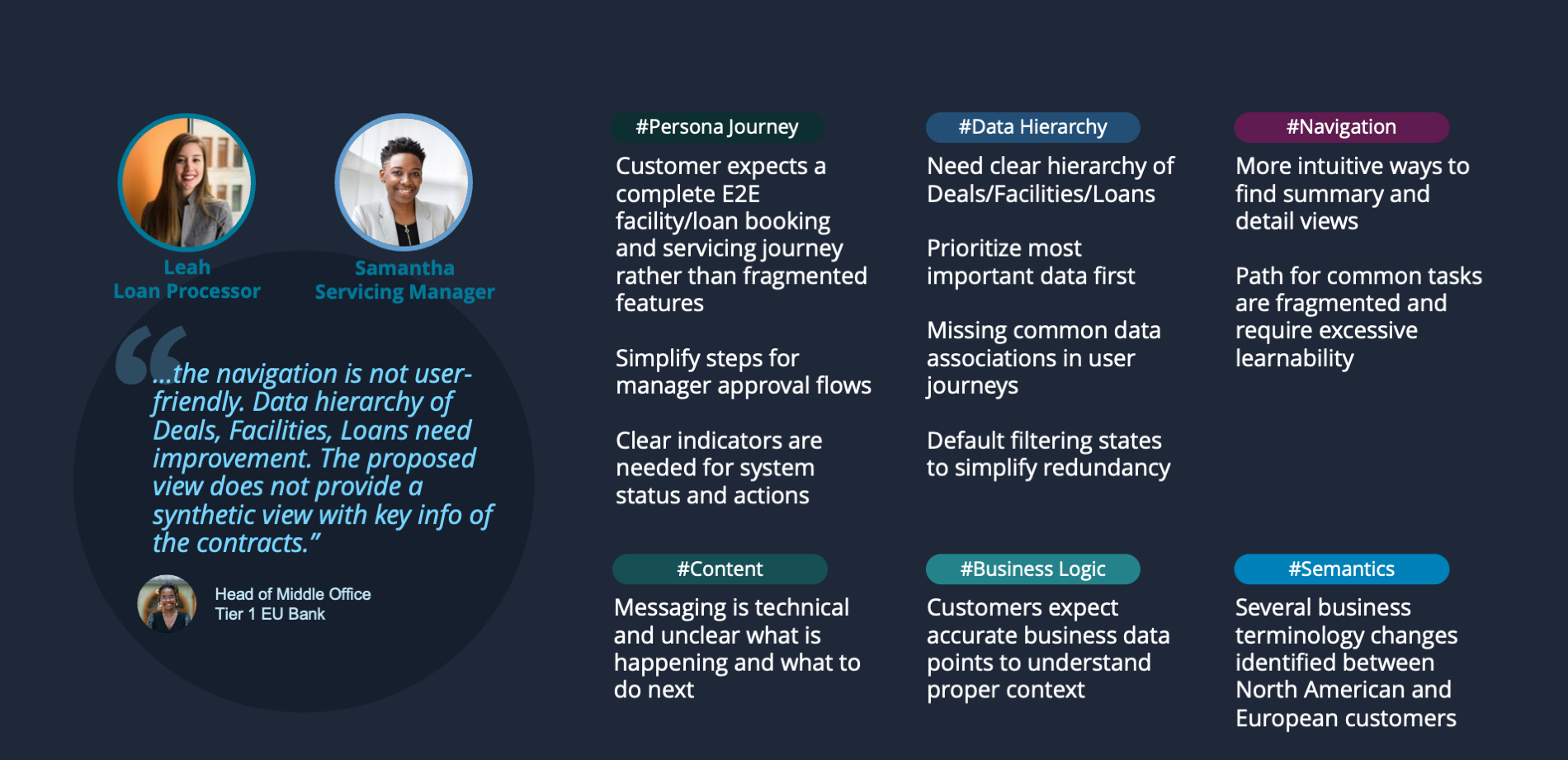Fragmented team understanding of persona(s), tasks, behaviors, current challenges & orchestration